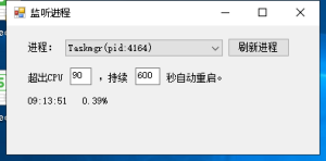 贴一段代码,用途是每秒监听选择的进程,若该进程连续x秒超出CPU占用x百分比时,则自动杀掉该进程并自动重新启动。